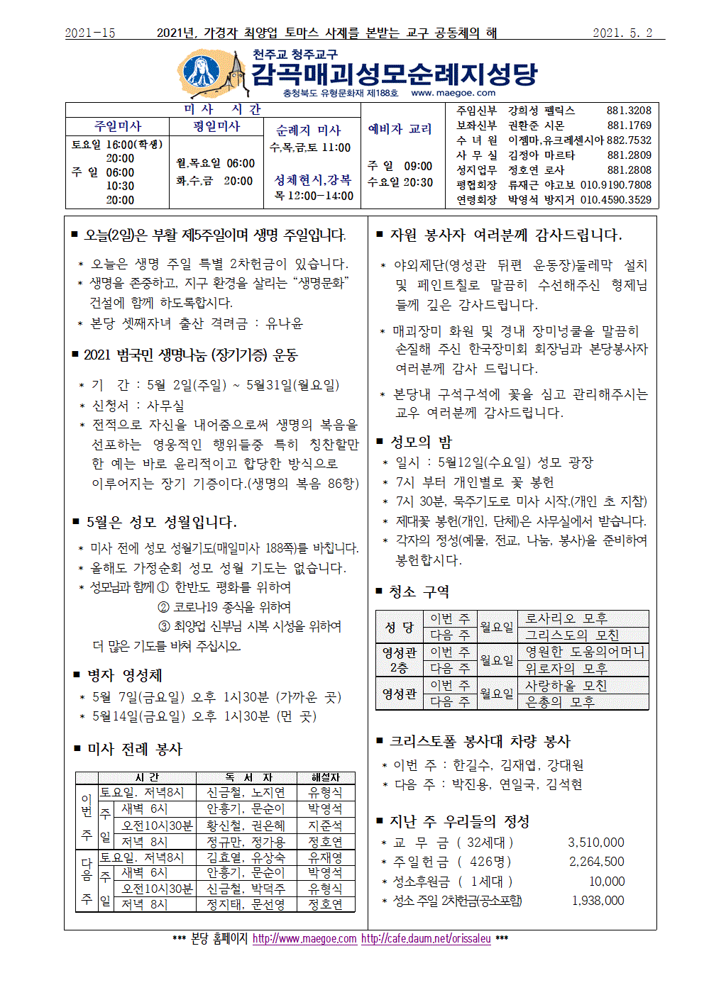 2021년 5월 2일 부활 제5주일 생명 주일