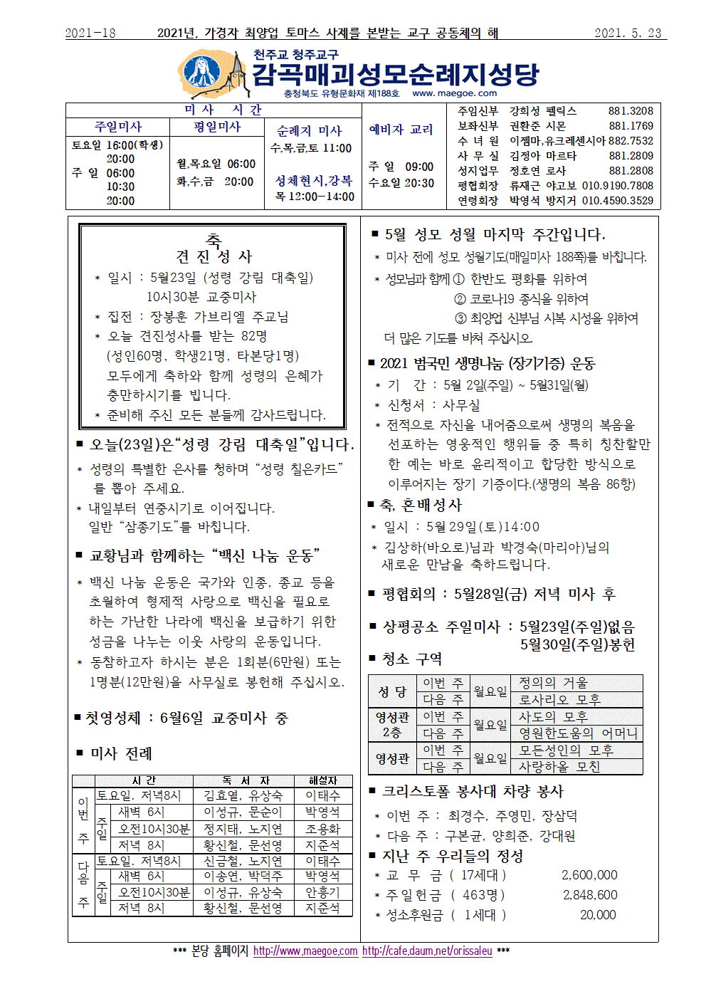 2021년 5월 30일 지극히 거룩하신 삼위일체 대축일, 청소년 주일
