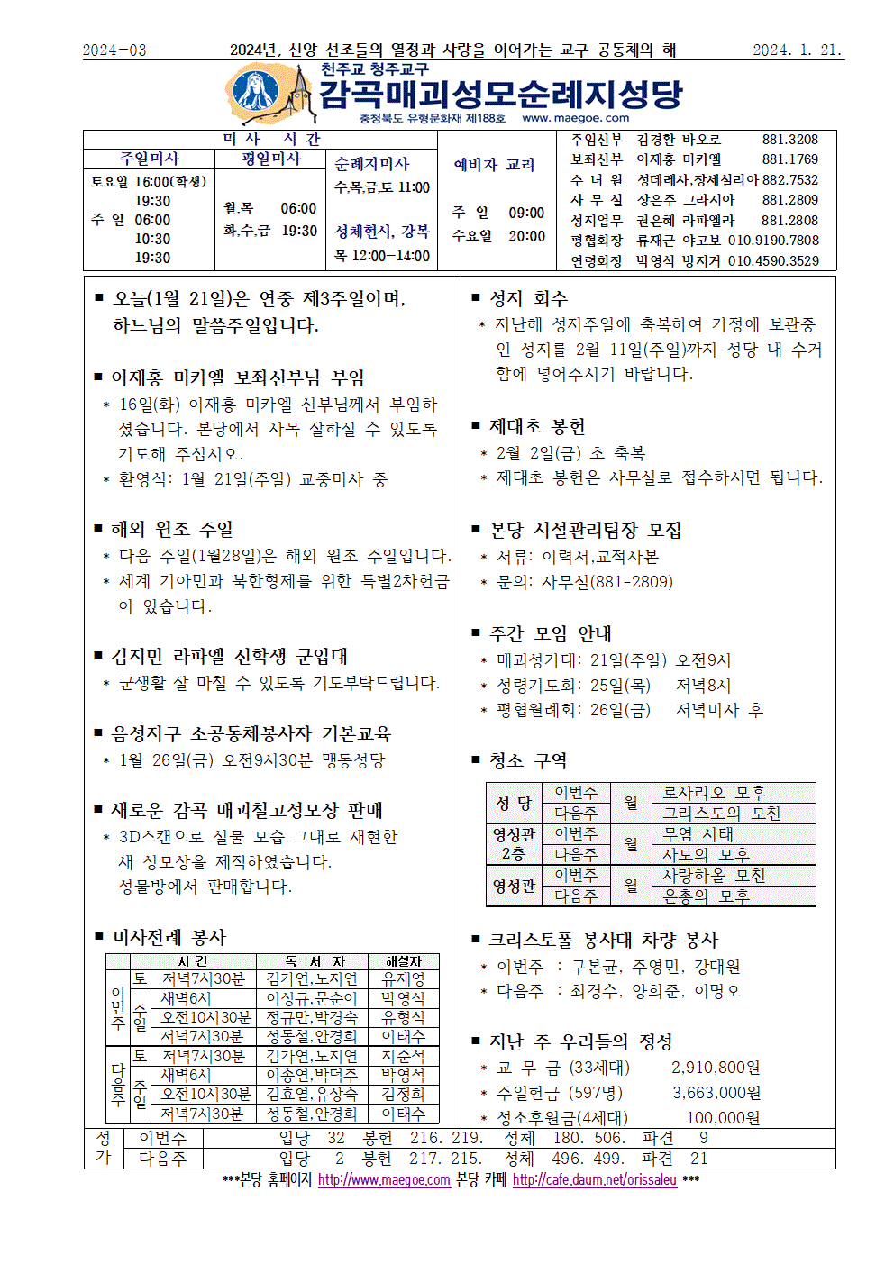 2024년 1월 21일,연중 제3주일,하느님의 말씀 주일