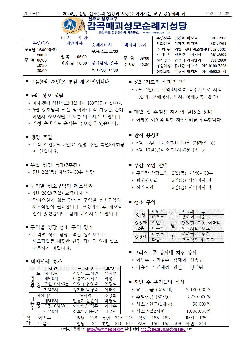 감곡매괴성모순례지성당의 다양한 소식과 행사안내