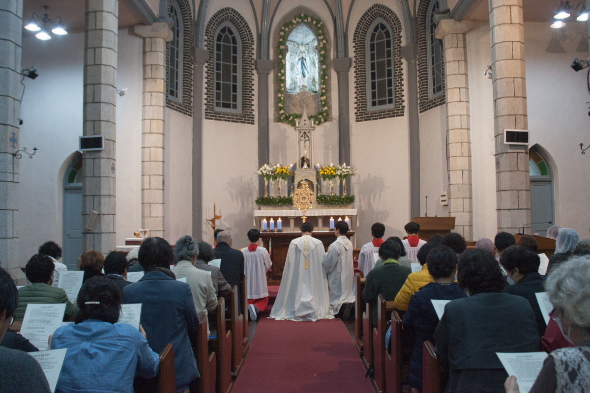 오후 6시 30분부터 묵주기도, 찬미, 미사, 성체강복